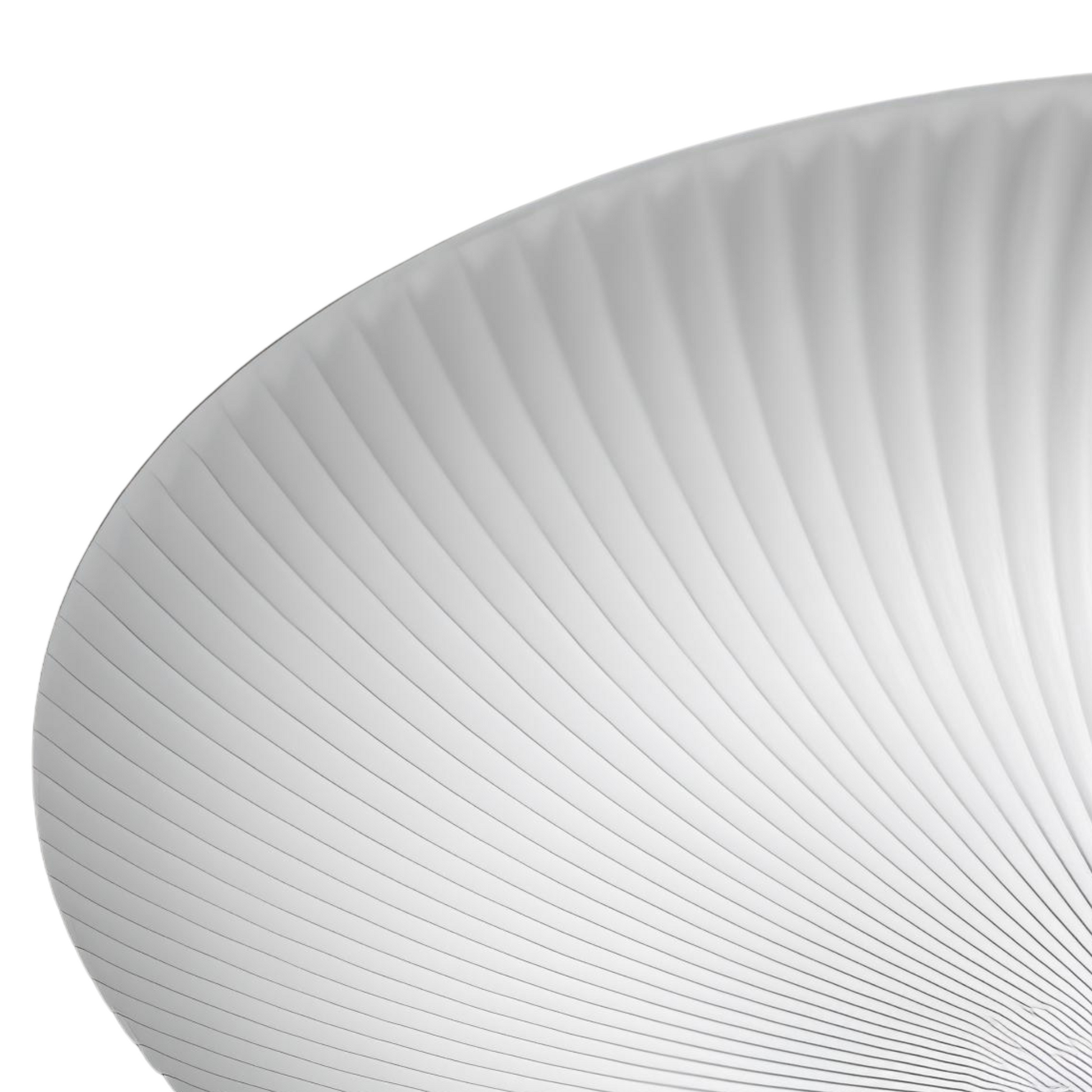 細かいプリーツが生み出す繊細でやわらかな発光感とマットな白さの清潔感。エレガントでナチュラルなくつろぎの空間に似合う優しいあかりです。