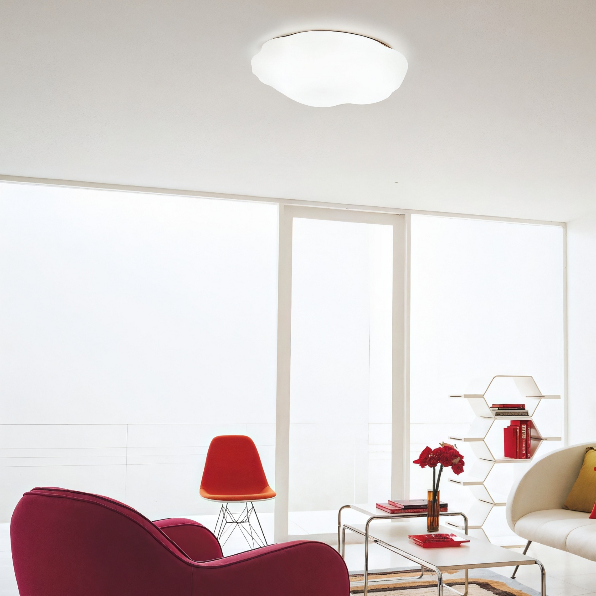 コンセプトは空に浮かぶ雲。マットな質感に仕上げた綿雲のようなユニークなフォルムの照明です。