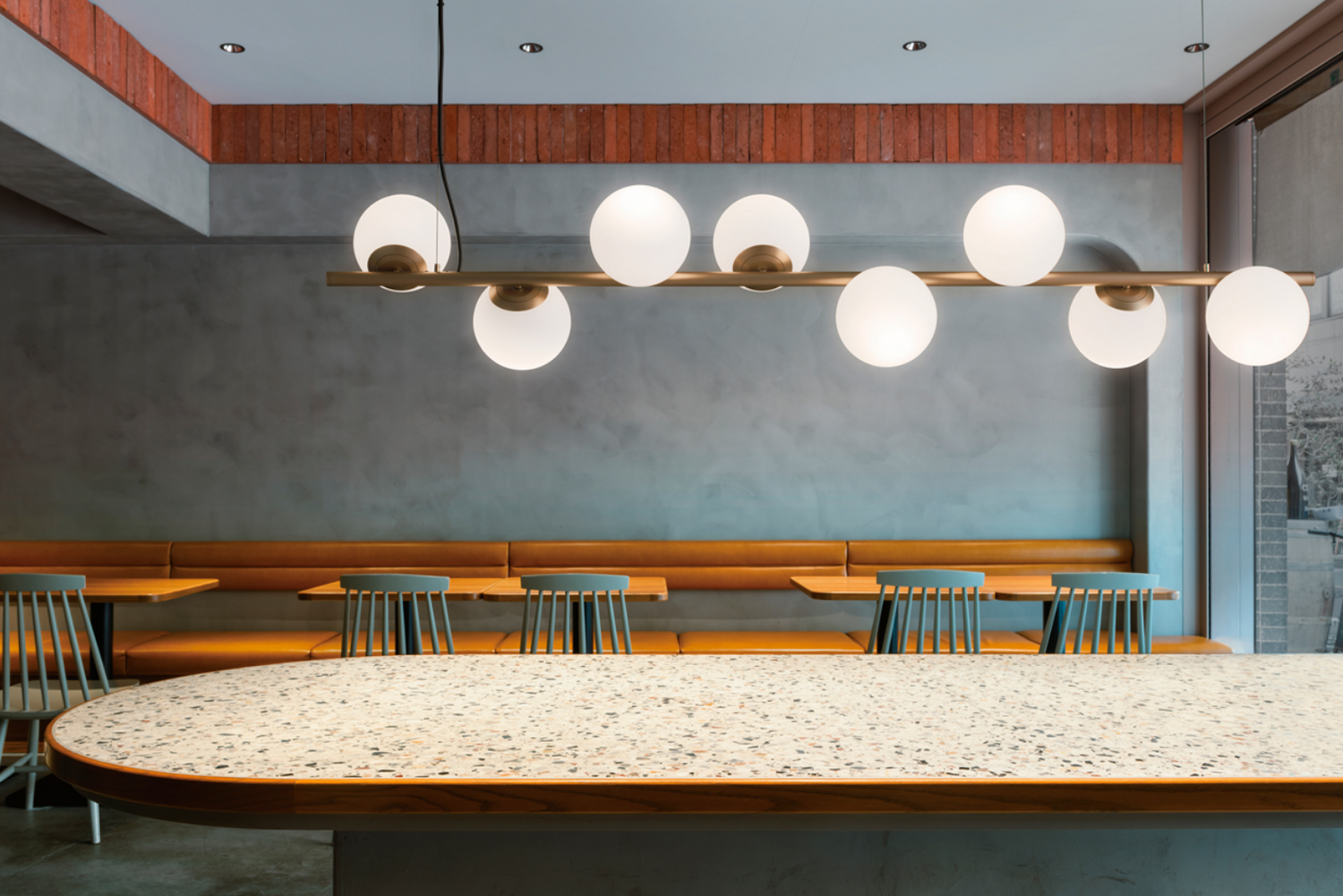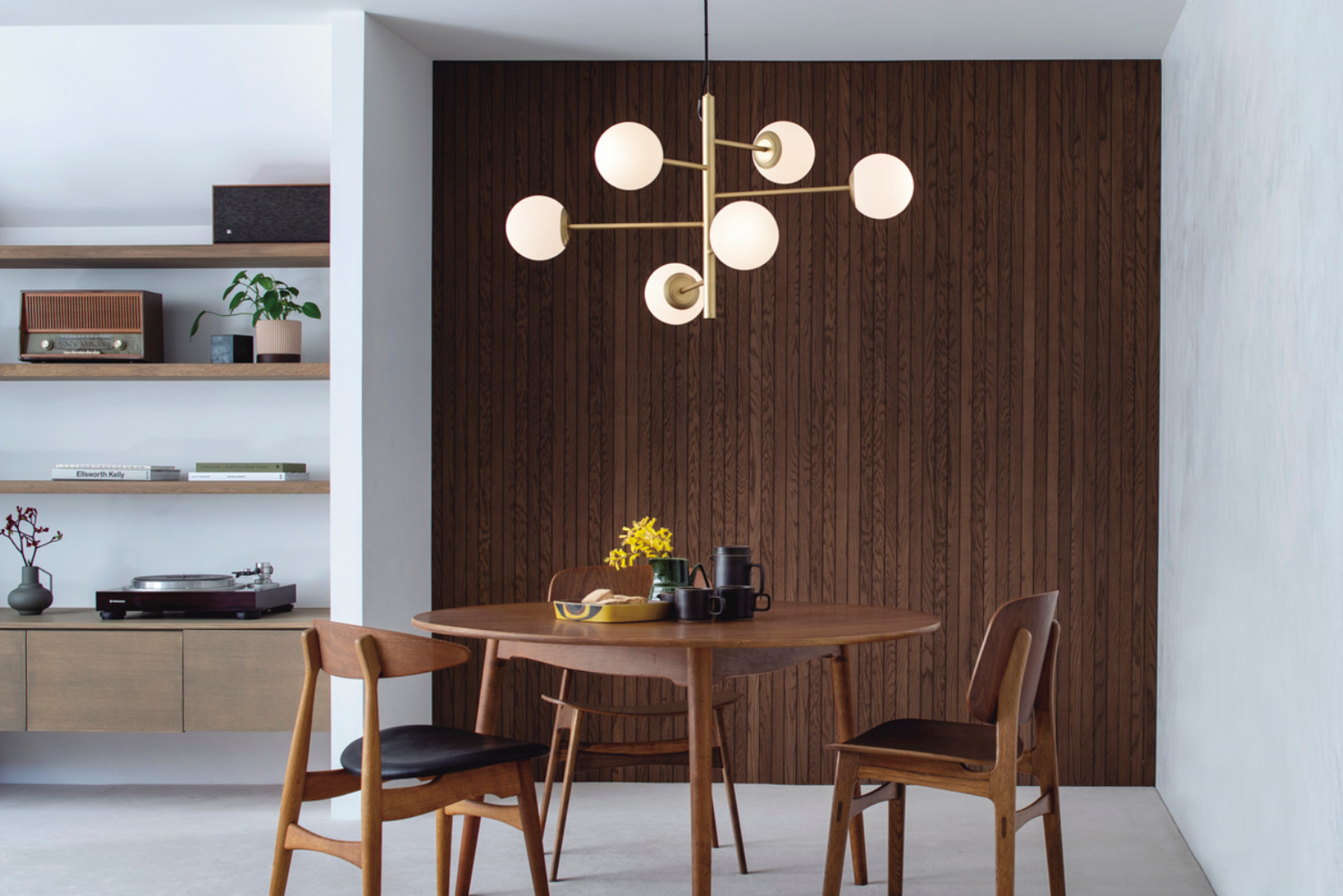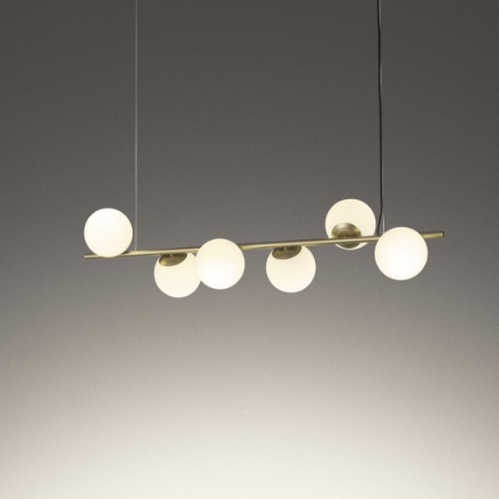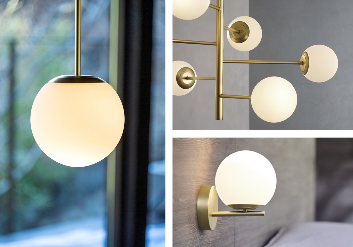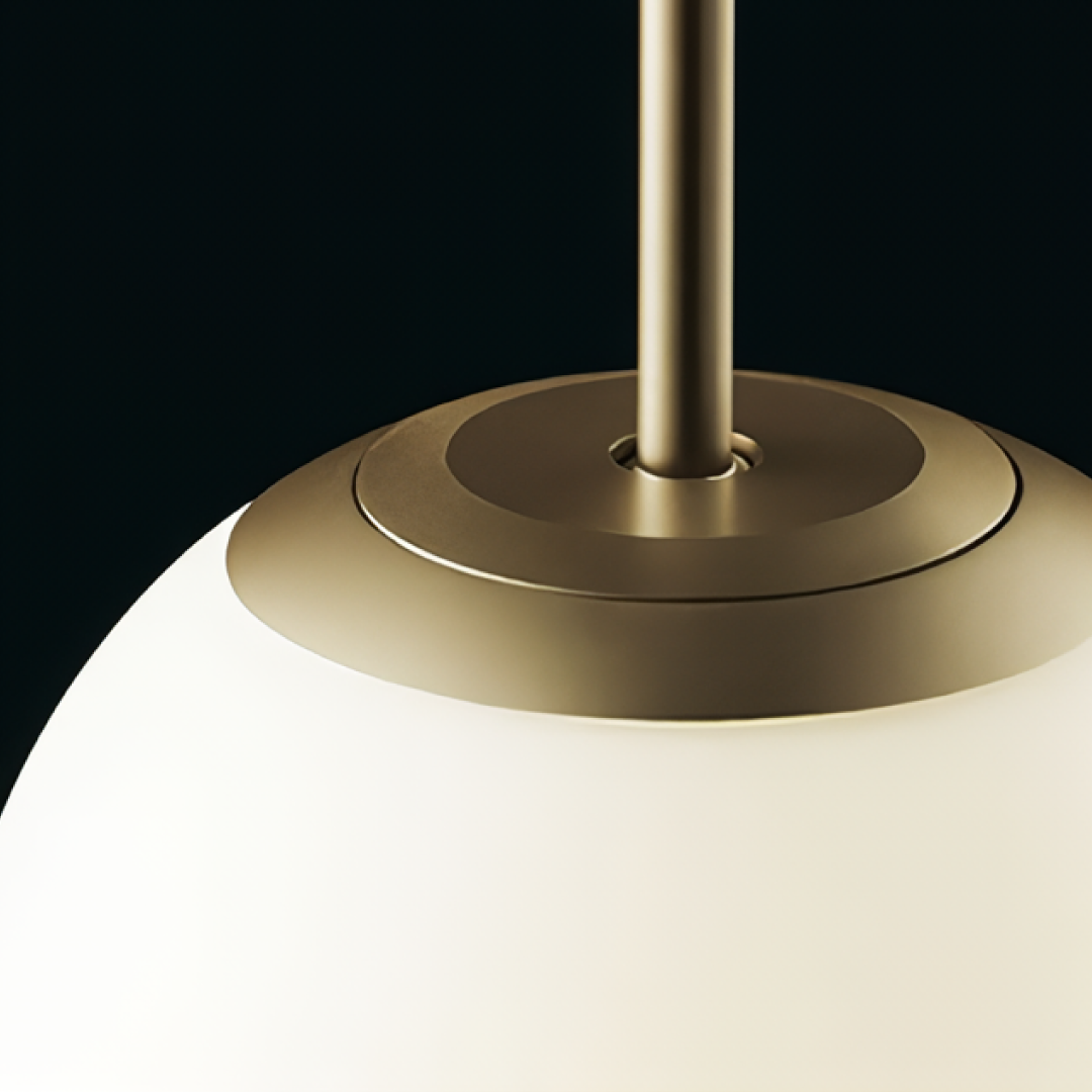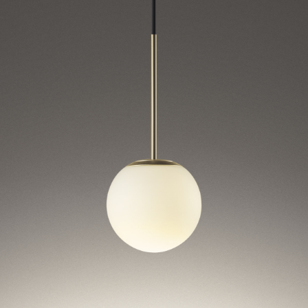極簡且俐落的線條設計,結合具有漂浮感的真圓球形燈罩。玻璃與金屬的材質質感,共同營造出高質感的空間氛圍。
