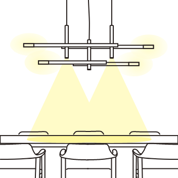 水平與垂直的律動交錯,構成裝點空間的桿狀結構集合體。乳白色的發光部增添華麗氛圍,直下則由兩盞聚光燈精準照明。