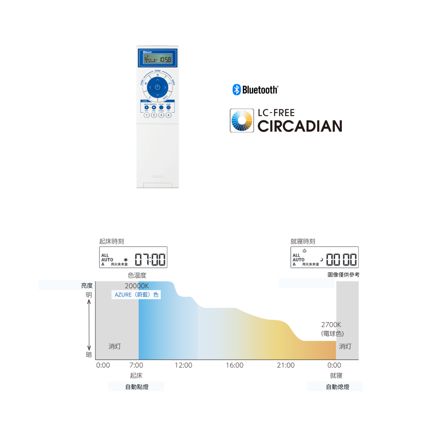 清晨以如藍天般的光線清爽醒來,白天以白色光保持活力;