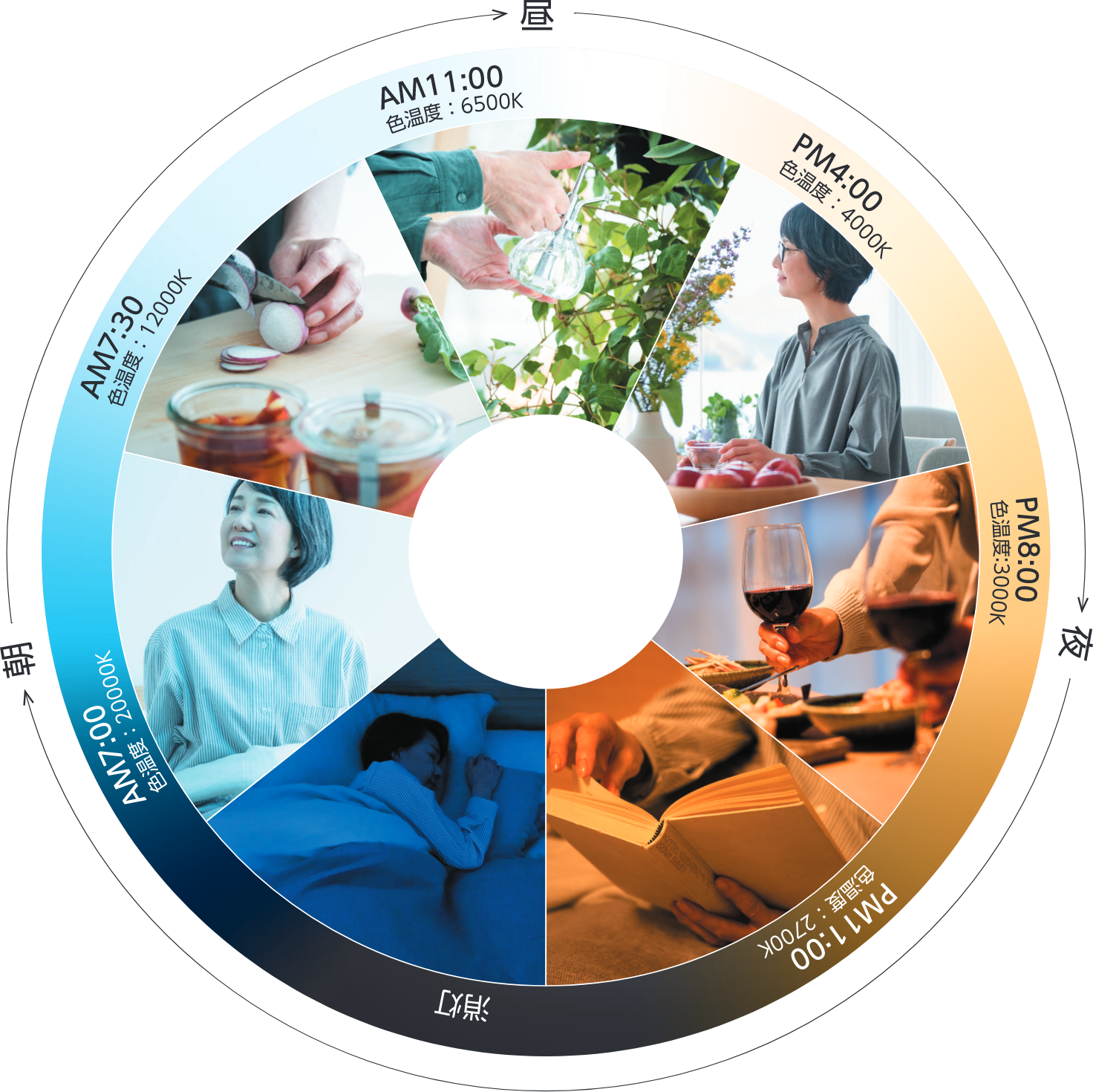透過與自然光週期同步的最適光線來調整生理節律,實現健康的生活環境。