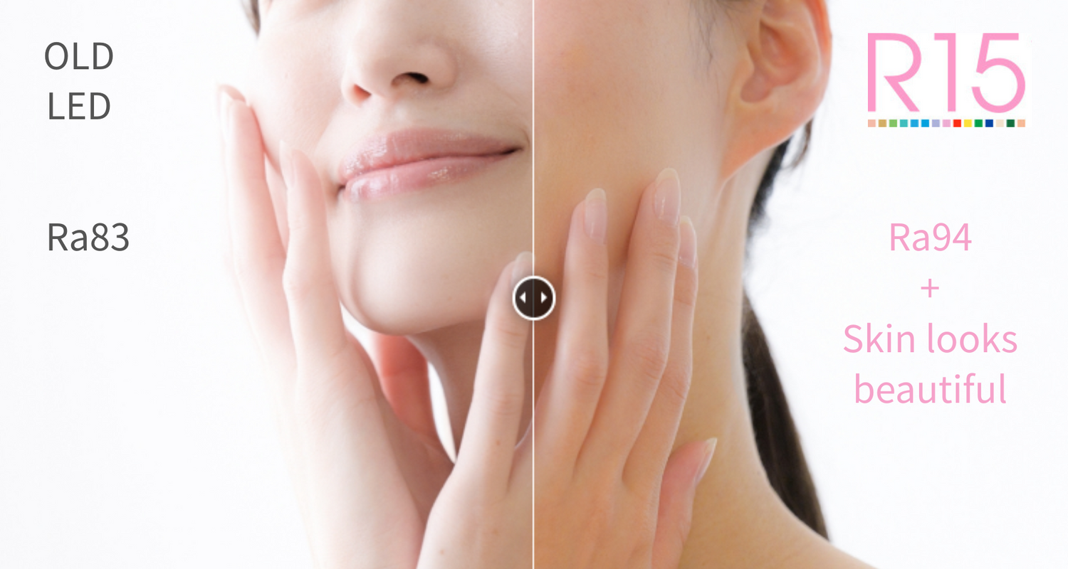 除了Ra94外,還採用了能讓人膚色更美麗的特殊技術「R15」LED晶片。