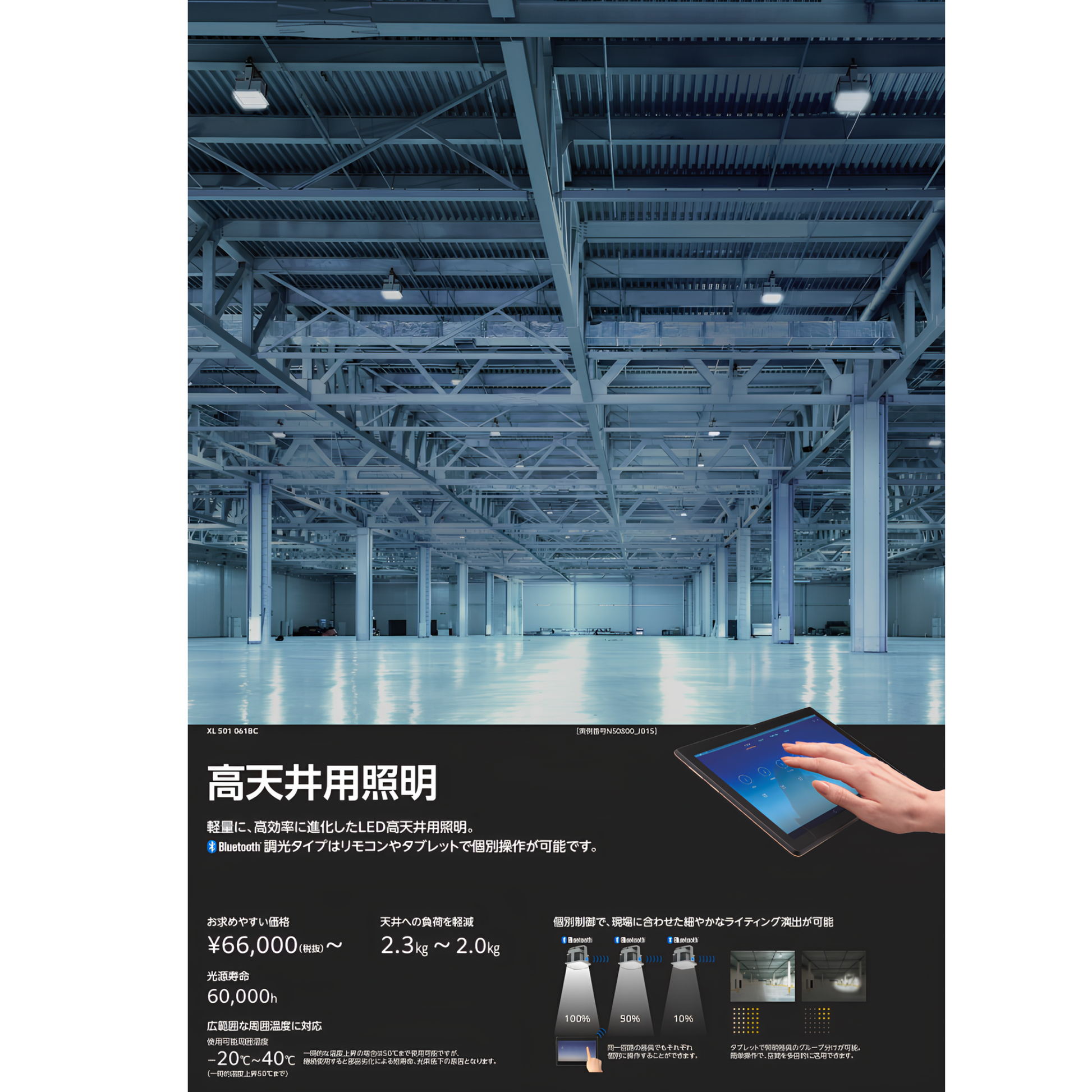 LED 高頂照明,重量輕且有效率。我們提供日本同行業中最低的價格。此外,重量也減輕至2-2.3公斤,減輕了天花板的負擔。