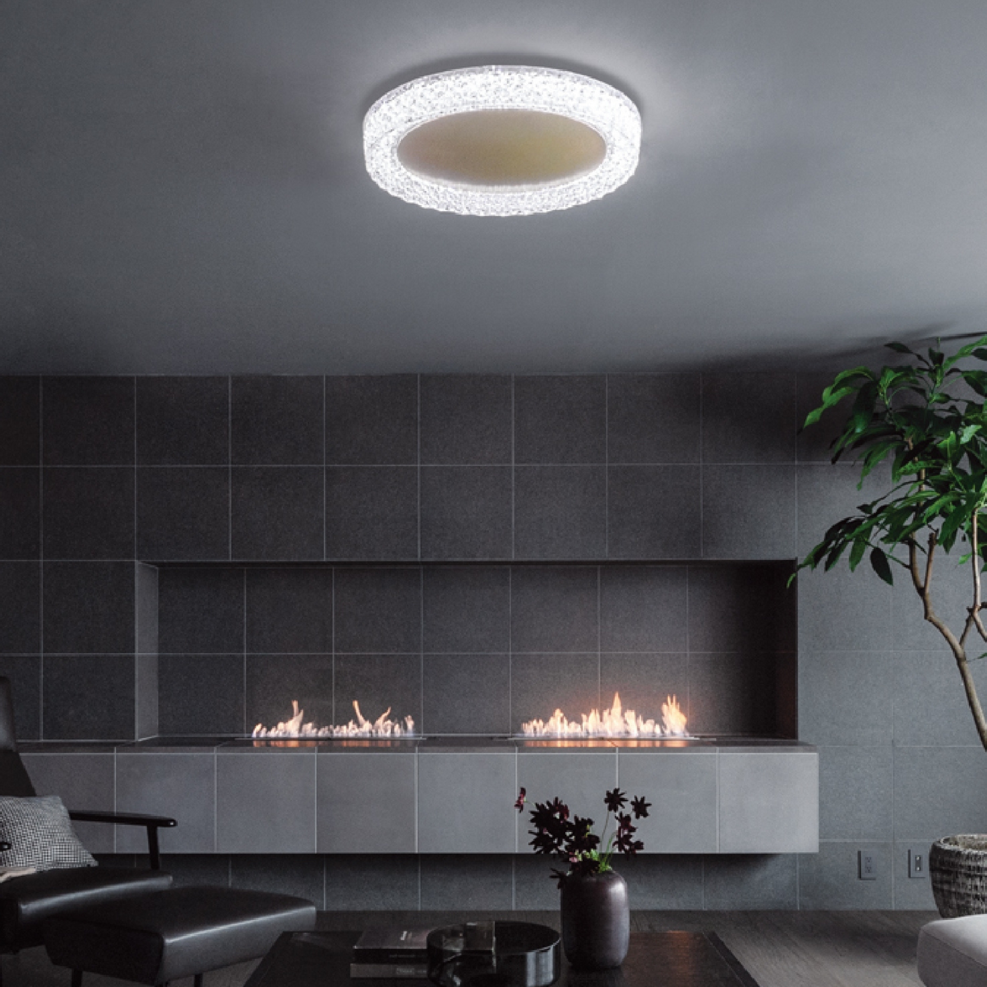 透過將發光部分擴展成環形,光線可以到達包括天花板和牆壁在內的廣泛表面,使空間看起來比傳統產品更大、更明亮。它還保持了與傳統產品相同的亮度水平。