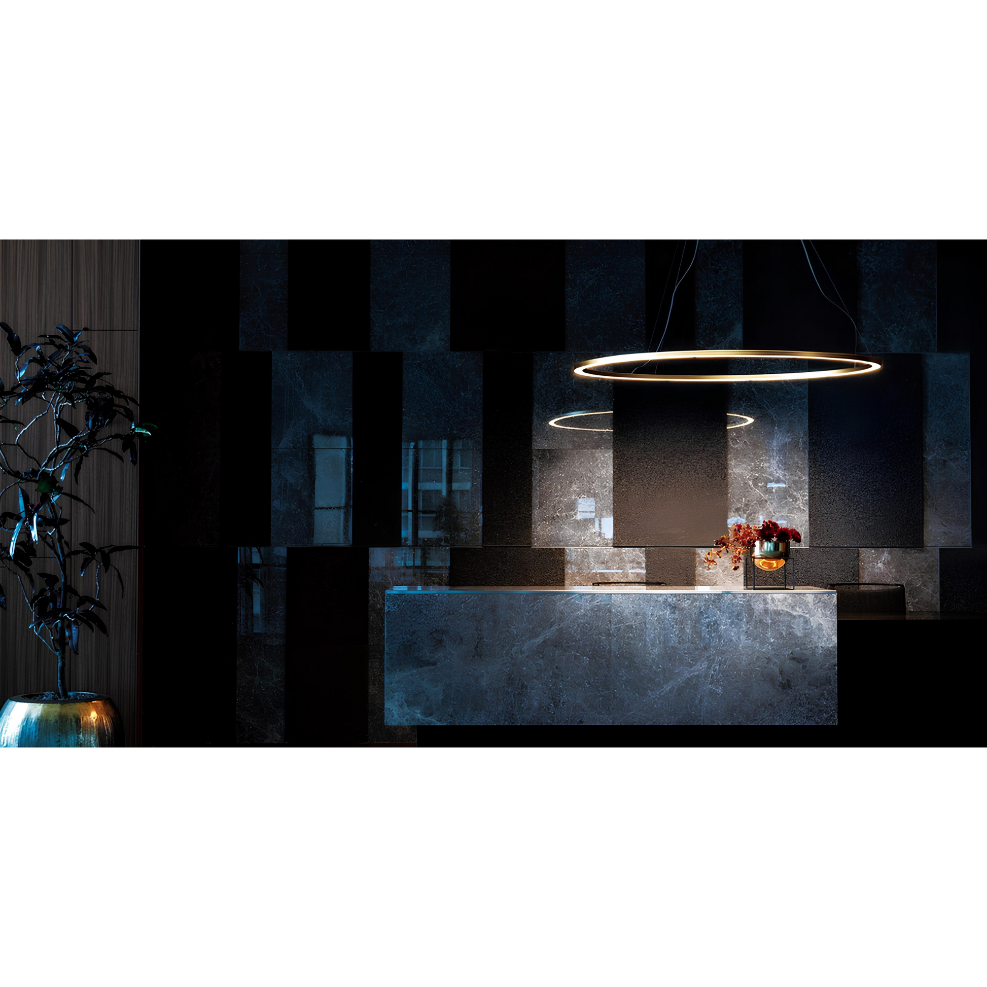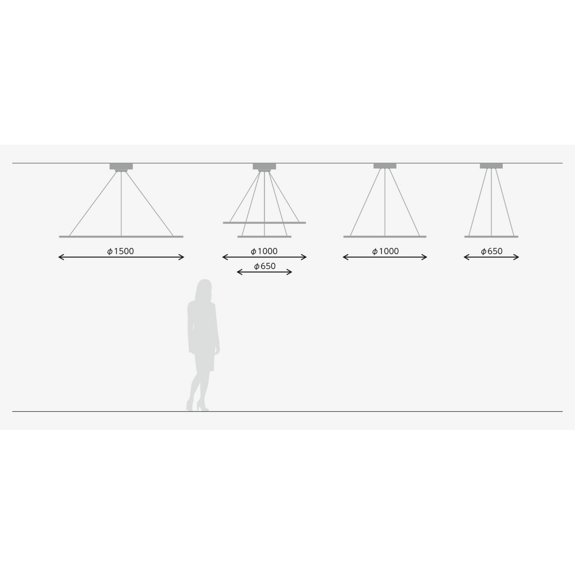 1500毫米直徑的圓環既有強大的存在感,又有輕盈的感覺,散發出柔和的光芒。