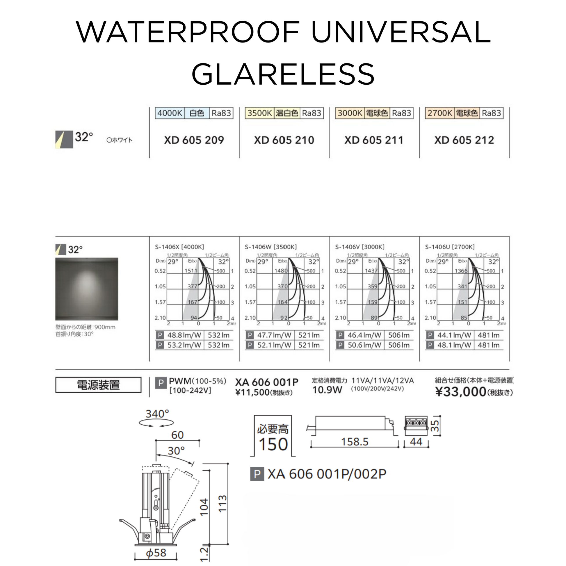 雖然孔徑尺寸極小,但可產生相當於二向色鹵素燈 65W 的光量。透過採用針孔形鏡錐來減少眩光,我們進一步完善了基本性能,同時消除了多餘的光線並保持了銳利的光分佈。